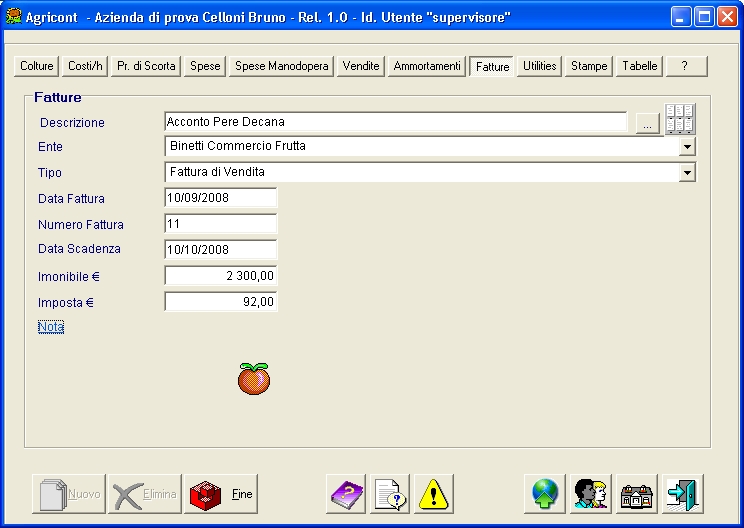 I dati inseriti non hanno alcuna rilevanza per l'elaborazione del Bilancio e/o dei conti colturali. E' tuttavia chiaro che se, in regime di IVA agevolato per l'agricoltura, dovesse risultare un importo a vantaggio dell'Azienda, tale importo dovrebbe essere registrato nella Sezione Vendite come Sopravvenienza Attiva,