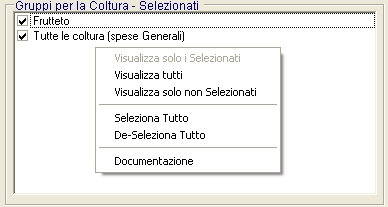 In fase di creazione della coltura compaiono tutti i Gruppi (figura precedente). Se richiamate una coltura precedentemente inserita compariranno solo i Gruppi selezionati (Figura successiva).