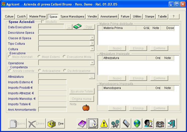Questa sezione permette di registrare tutte le spese aziendali, fatta eccezione per le spese relative alla manodopera. Le spese reigistrabili in questa Sezione sono: